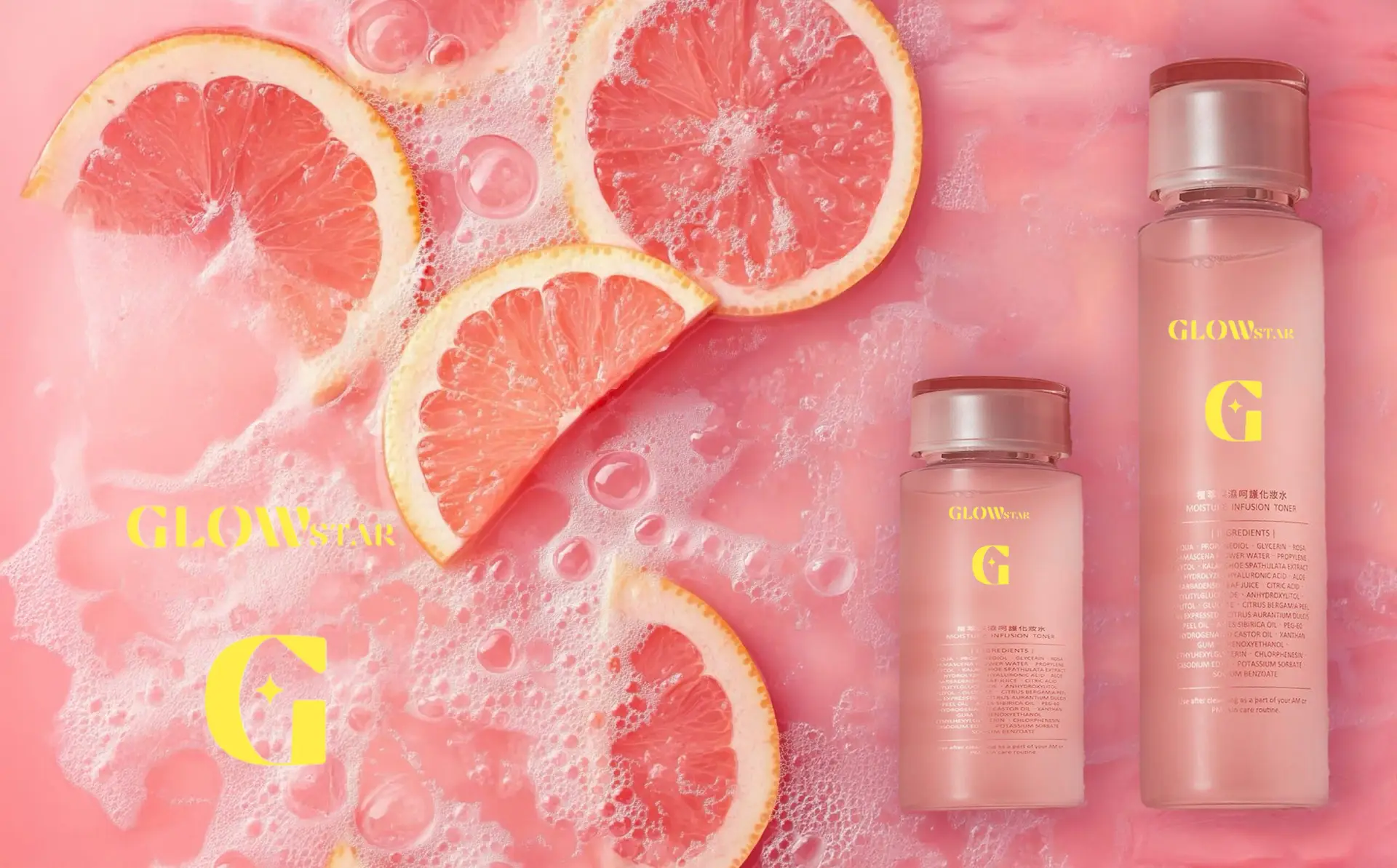 L’univers textuel de Glowstar s’inspire de la nature et de la lumière: un mélange délicat de miel doré, de fruits juteux, de fleurs éclatantes, de paillettes lumineuses et d’eau fraîche. Chaque élément évoque le douceur, la fraîcheur et la vitalité, en créant un imaginaire sensoriel. Ce choix renforce l’identité d’une marque: bienveillant, pétillante et tournée vers l’éclat naturel.